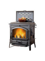 Isotta con Cerchi.16 es una estufa de leña de hierro fundido con una placa con círculos de hierro fundido pulido en la parte superior y un panel de cierre conveniente. Además, está equipada con una puerta lateral, alternativa a la frontal, lo que hace que la carga de la leña sea aún más cómoda e inmediata.