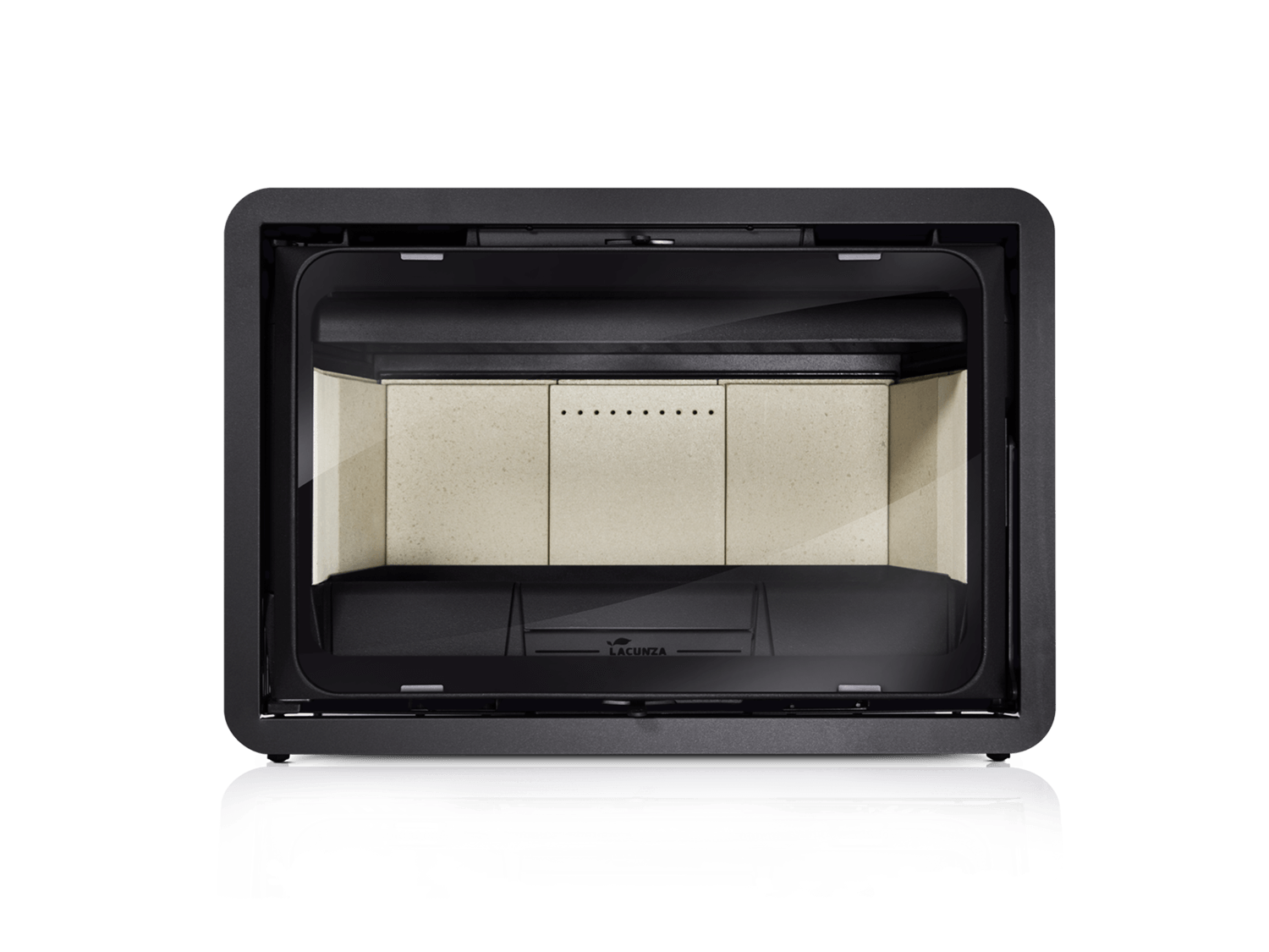 Insertable de hierro fundido pero con un hogar de vermiculita que le ofrece mayor claridad al hogar y unos mejores valores de rendimiento y emisiones. Además con gran poder de ventilación gracias a sus dos turbinas centrifugas. Incluye una práctica parrilla de asados y potenciómetro regulador con mando a distancia.
