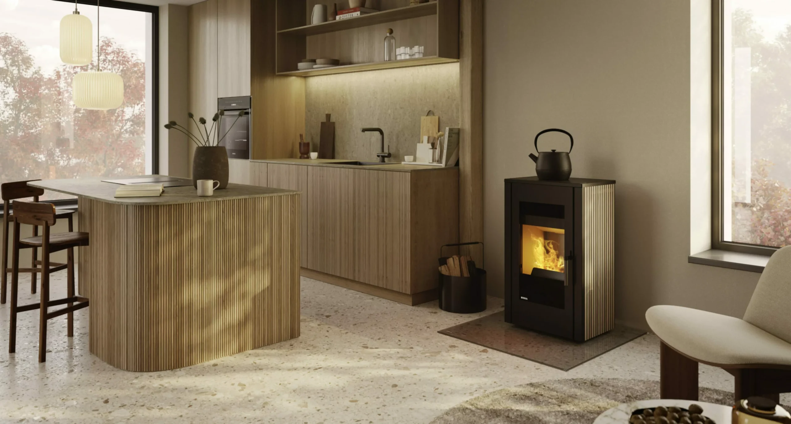 Calentar y cocinar con leña. Sostenible y agradable.Tanto si se trata de una cocción lenta como de una rápida ebullición, el modelo MOKA garantiza resultados culinarios perfectos y temperaturas agradables al mismo tiempo. Su elegante diseño y su placa esmaltada de alta calidad, son el corazón de cualquier espacio de vida. La completa placa de cocción se calienta rápidamente alcanzando altas temperaturas. Una ranura perimetral, recoge con seguridad los calientes líquidos, protegiendo la placa de cocción. El suministro de aire y, por tanto, la temperatura de la placa pueden regularse cómodamente de forma manual desde la parte superior. Su elegante aspecto se debe también a su revestimiento lateral, opcionalmente en acero negro, gres porcelánico con decoración de listones de madera o piedra gris, que le permite destacar incluso en las estancias más modernas.