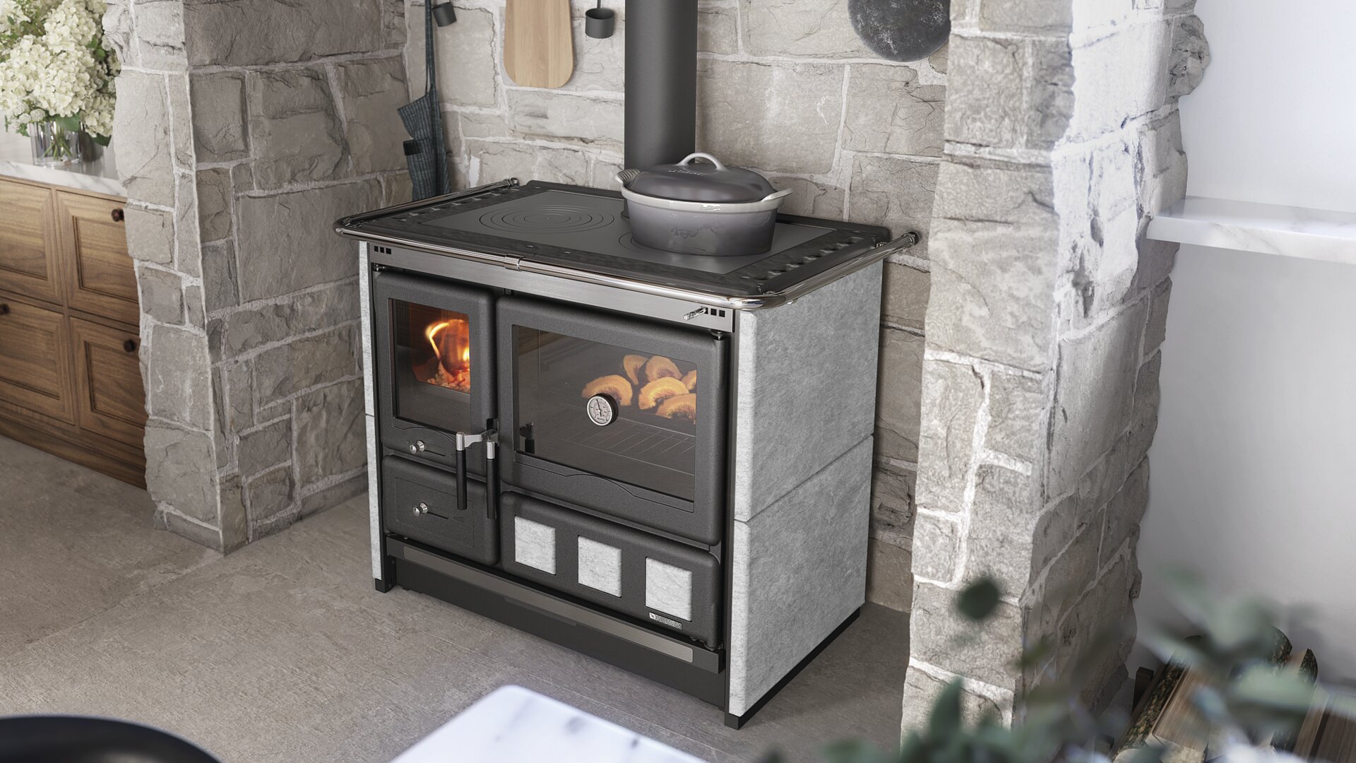Rosa XXL, con su gran horno esmaltado de 78 litros y su revestimiento de acero porcelanizado, combina funcionalidad con una estructura duradera. Disponible en burdeos y blanco infinito, es perfecta para amueblar tu cocina, mientras que el doble cajón de cristal y madera realzan su valor y practicidad.